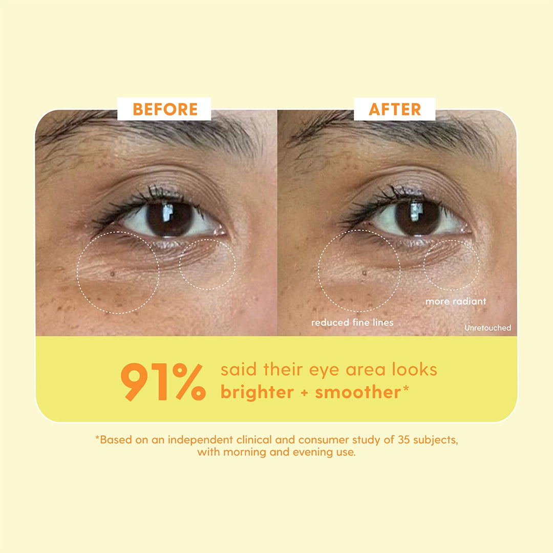 An illuminating eye cream powered by Vitamin C + clinically proven to hydrate, brighten, reduce the appearance of dark circles and fine lines. Dermatologist recommended + clinically tested.